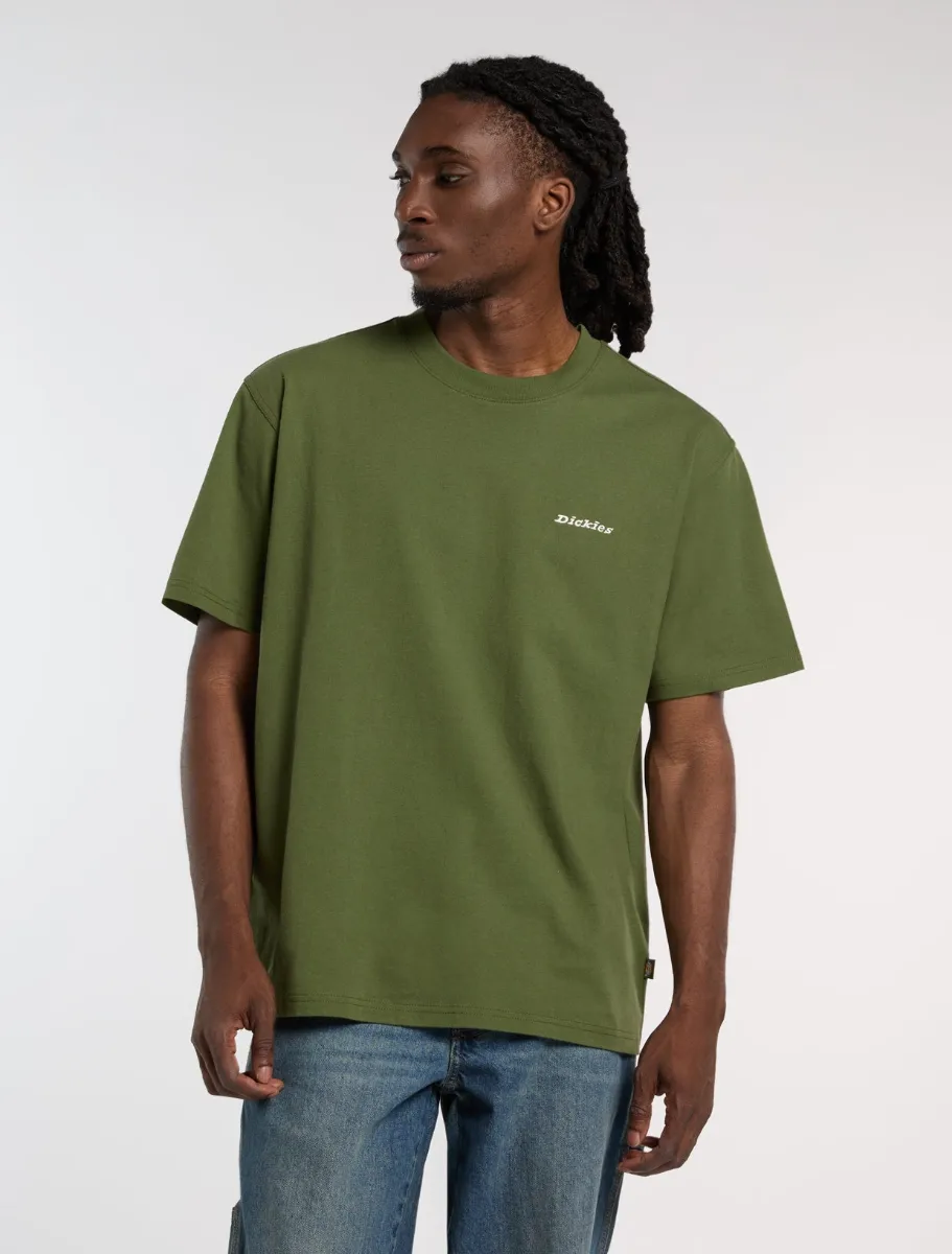 חולצת טי קצרה גברים LORETTO היא חולצת טי בגזרה נינוחה. עשויה כותנה במשקל 230GSM לנוחות יומיומית. הדגם כולל רקמת סקריפטית של Dickies בצד שמאל של החזה. חולצה נוחה, קלאסית ומתאימה לכל מצב.