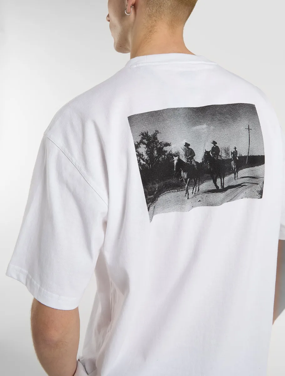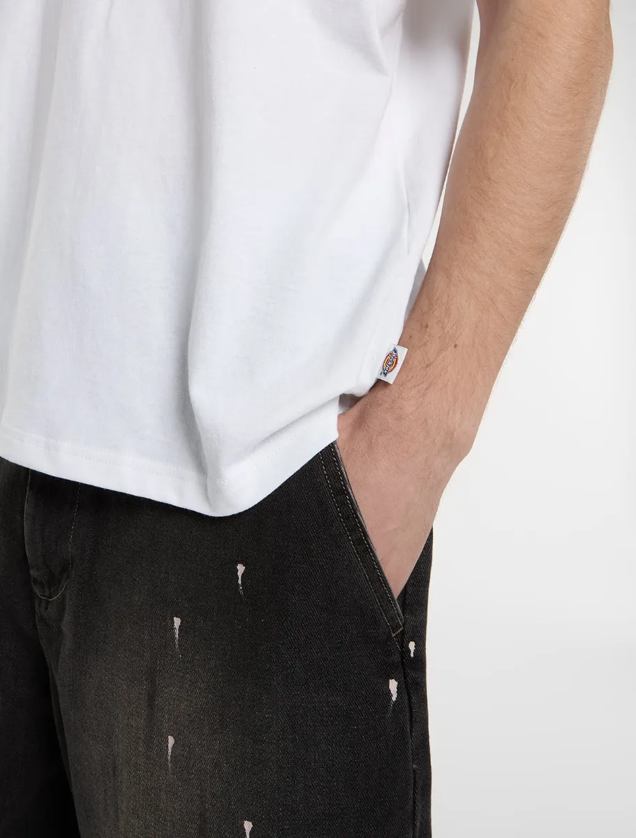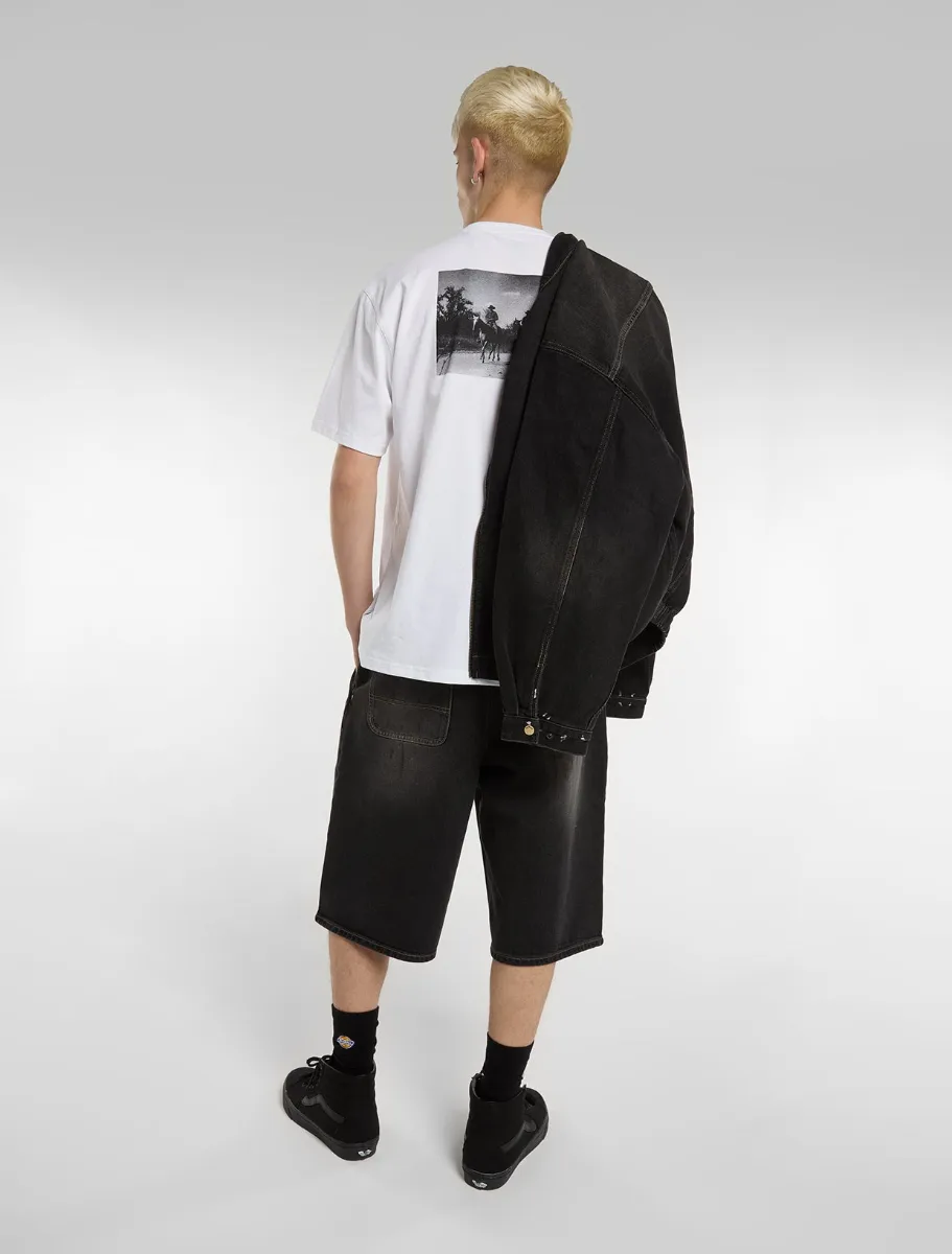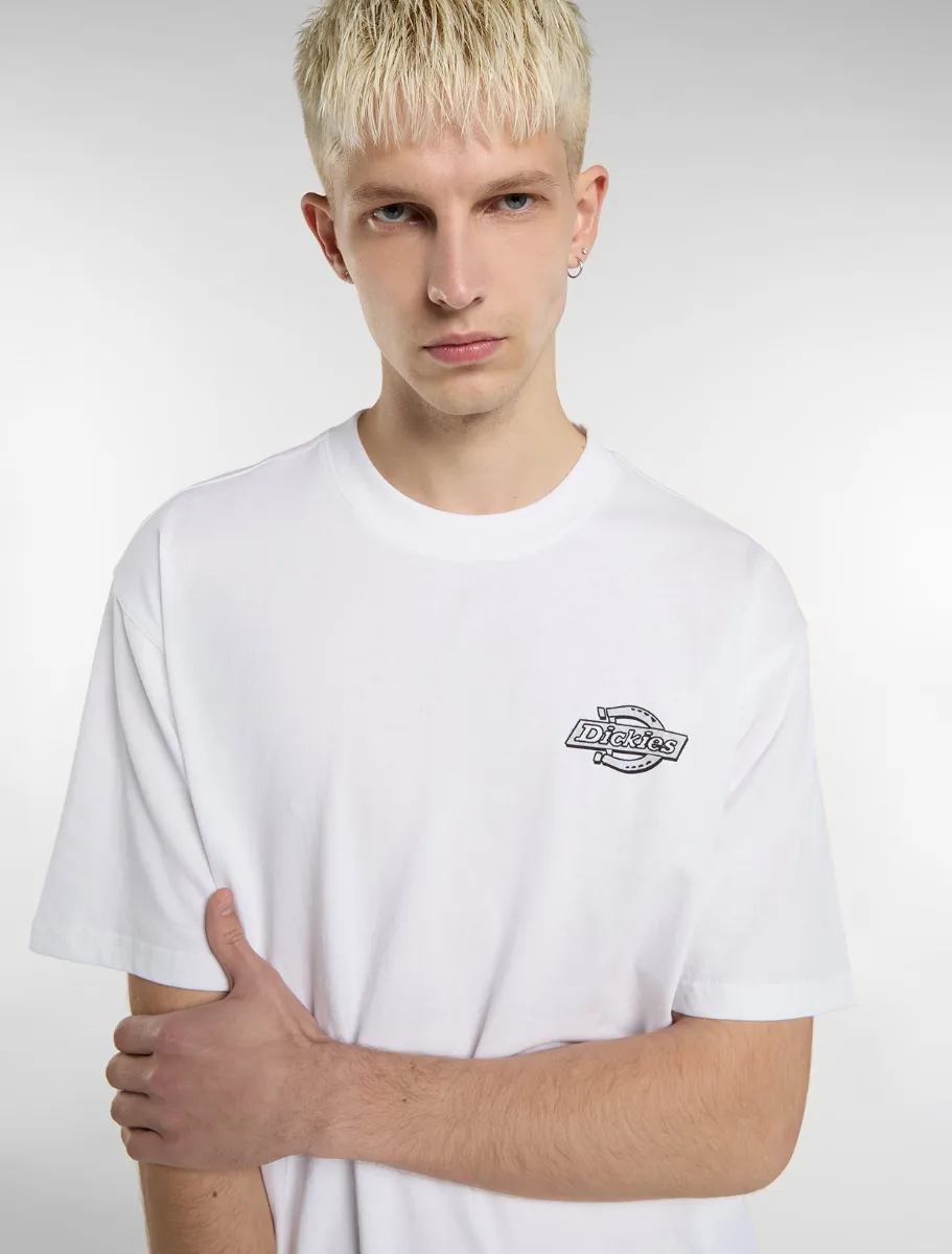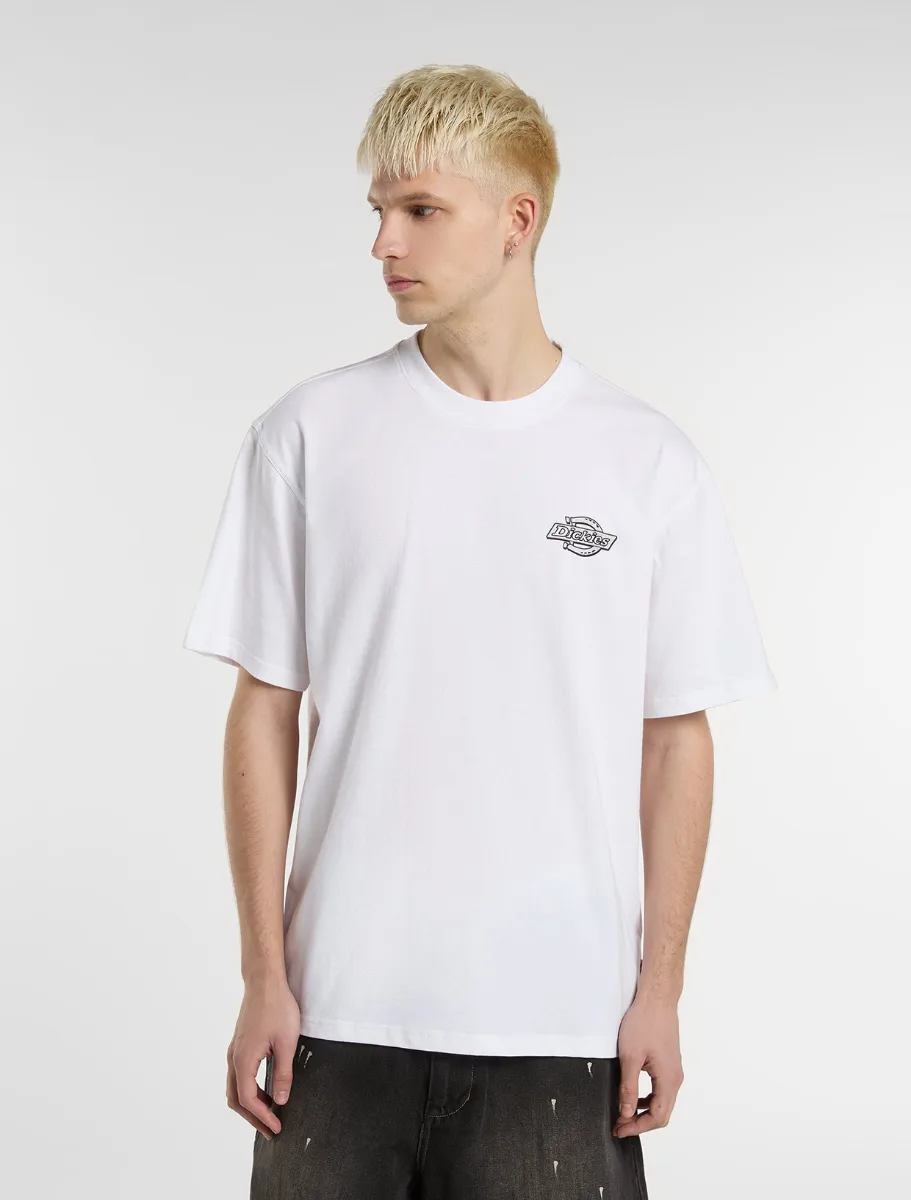 חולצת טי קצרה גברים MILLVILLE היא חולצת טי גרפית בגזרה נינוחה עם גרפיקה בהשראת המערב ישן. עשויה כותנה 200GSM עם גמישות לנוחות יומיומית. החולצה כוללת לוגו Dickies בצבע אחד בצד שמאל של החזה, הדפס גדול בגב של צילום קאובוי בסטייל וינטג', ותווית צד ארוגה של Dickies. חולצה יומיומית עם קריצה נוסטלגית לימים של פעם.