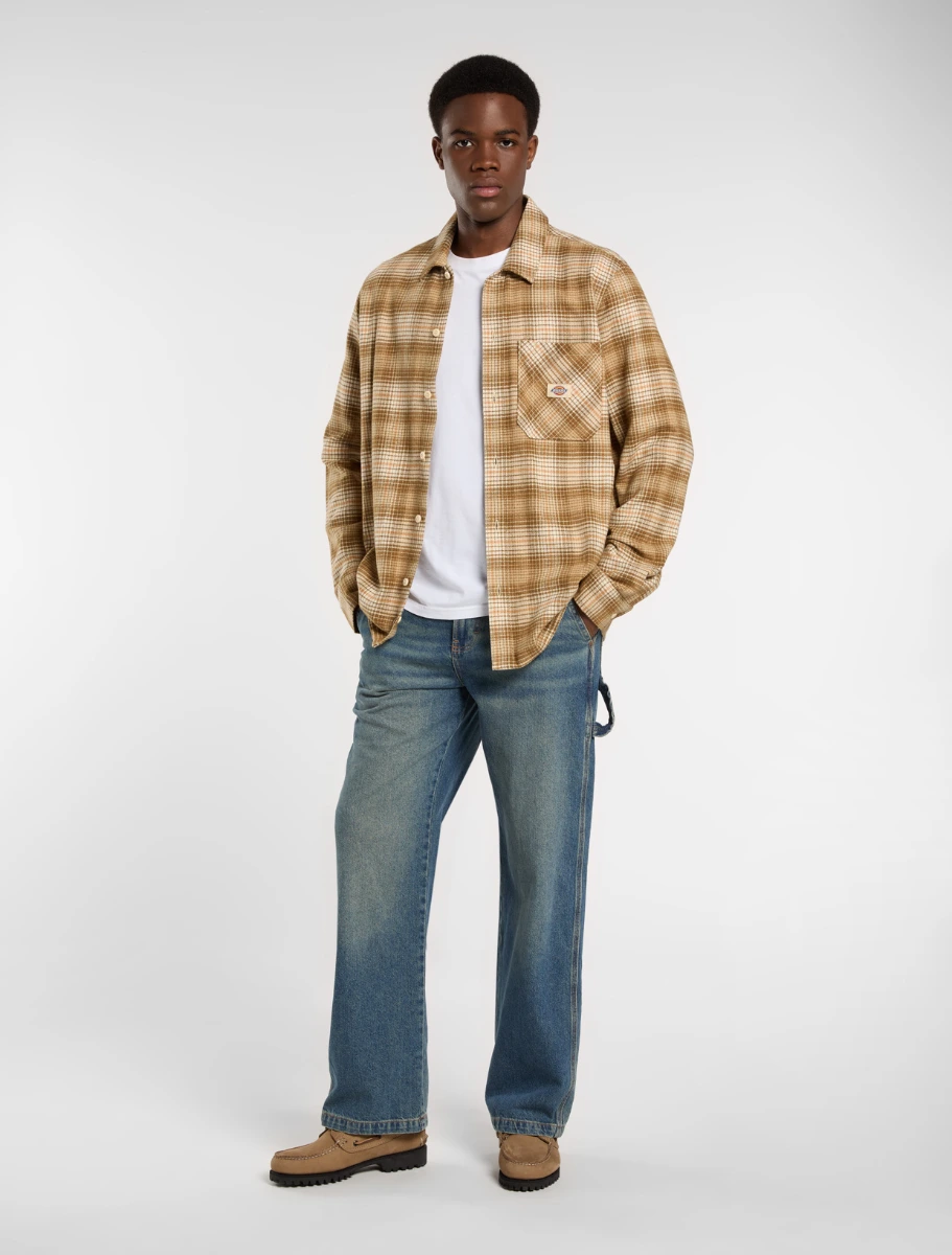 Forest Check Shirt היא חולצת פלנל עם שרוולים ארוכים בגזרה משוחררת, בעיצוב קלאסי בהשראת בגדי עבודה של Dickies. עשויה 100% כותנה עם גימור מוברש לנוחות מירבית, כוללת כיס קדמי עם חלוקה לעט ותג ארוג אייקוני. חולצה על-זמנית עם בד משובץ חדשני.