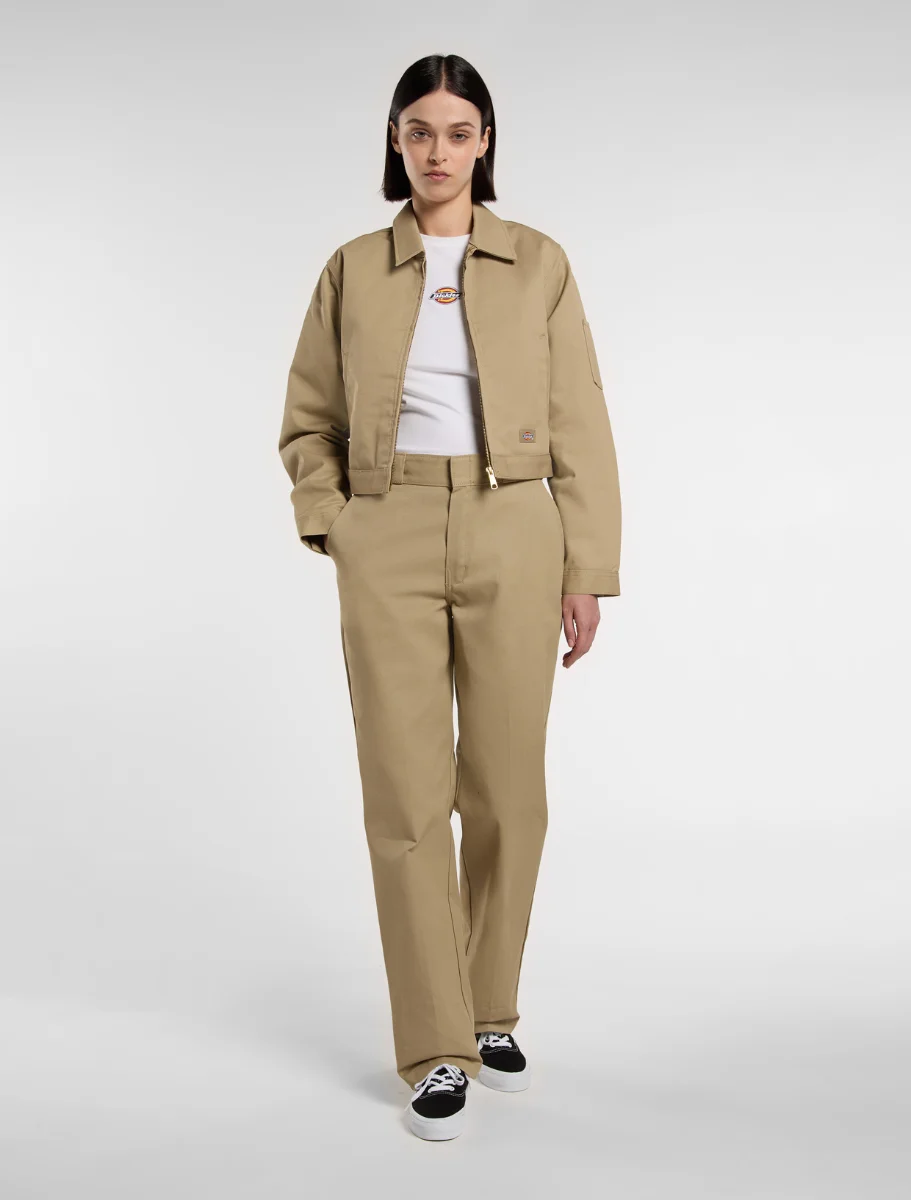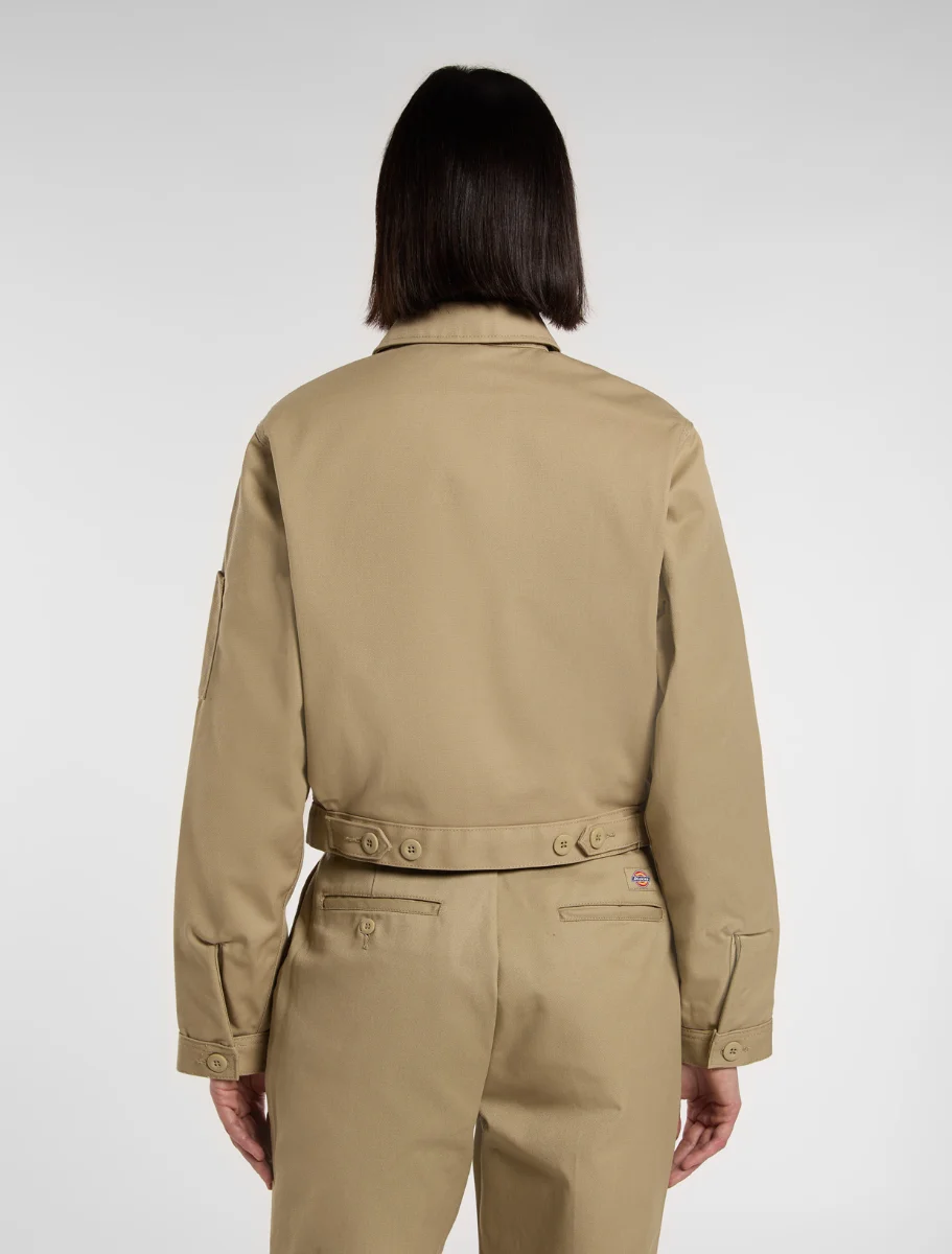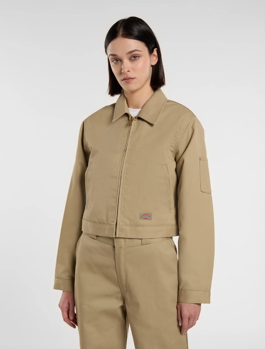 Lined Eisenhower Crop הוא ג'קט בגזרת קרופ קלאסית בהשראת בגדי עבודה, בעיצוב המזוהה עם Dickies. כולל רוכסן קדמי, בטנת בד ניילון מרופדת, כיסים אלכסוניים בחזית, וכפתורים להתאמה במותן ובשרוולים. עשוי מבד 66 Cloth עם ציפוי עמיד למים, ומסיבים ממוחזרים שנבחרו בקפידה. ג'קט בהשראת בגדי עבודה, נוח ועמיד לשימוש יומיומי.