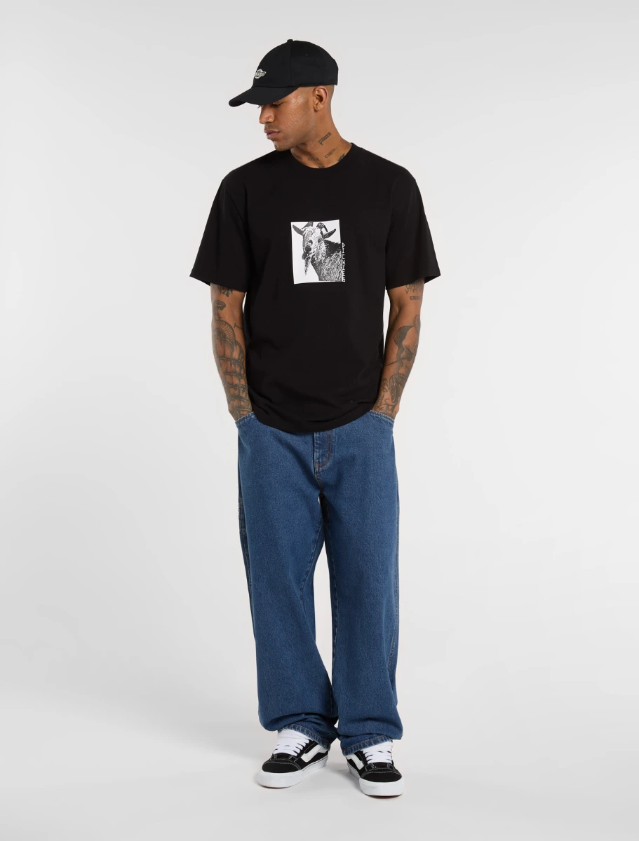 Mike Anderson Graphic SS Tee היא חולצת טי קצרה בגזרה משוחררת, עשויה ג'רזי כותנה במשקל 230 גרם עם גימור Temp IQ לוויסות טמפרטורה. כוללת הדפס צילום של Snowflake – עז המחמד של Mike Anderson – במרכז החזה, ותג Dickies Skate ארוג בלולאת המכפלת. חולצה נוחה ועמידה, מוכנה לכל סשן.