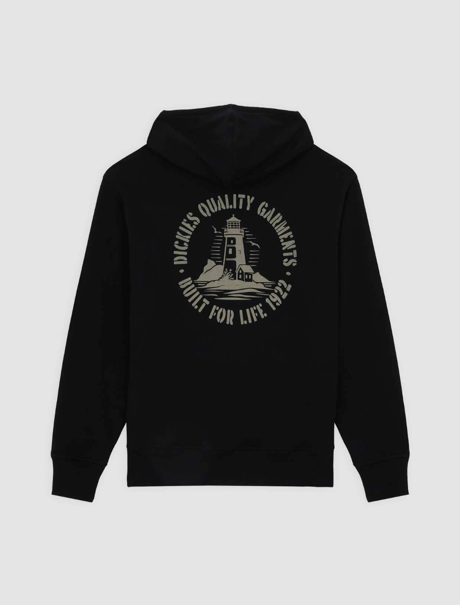 ה-Parrotsville hoodie הוא קפוצ'ון בגזרה משוחררת, עשוי מכותנה בת קיימא מסוג BCI ופוליאסטר ממוחזר. הבד מסוג פליס מוברש במשקל 370GSM, כולל מכפלת ושרוולים עם בד ריב, קפוצ'ון עם שרוך, איור קטן של מגדלור בצד שמאל של החזה וגרסה גדולה יותר בגב, תג ארוג של Dickies בתחתית. קפוצ'ון נוח ועמיד שמתאים לשימוש יומיומי.