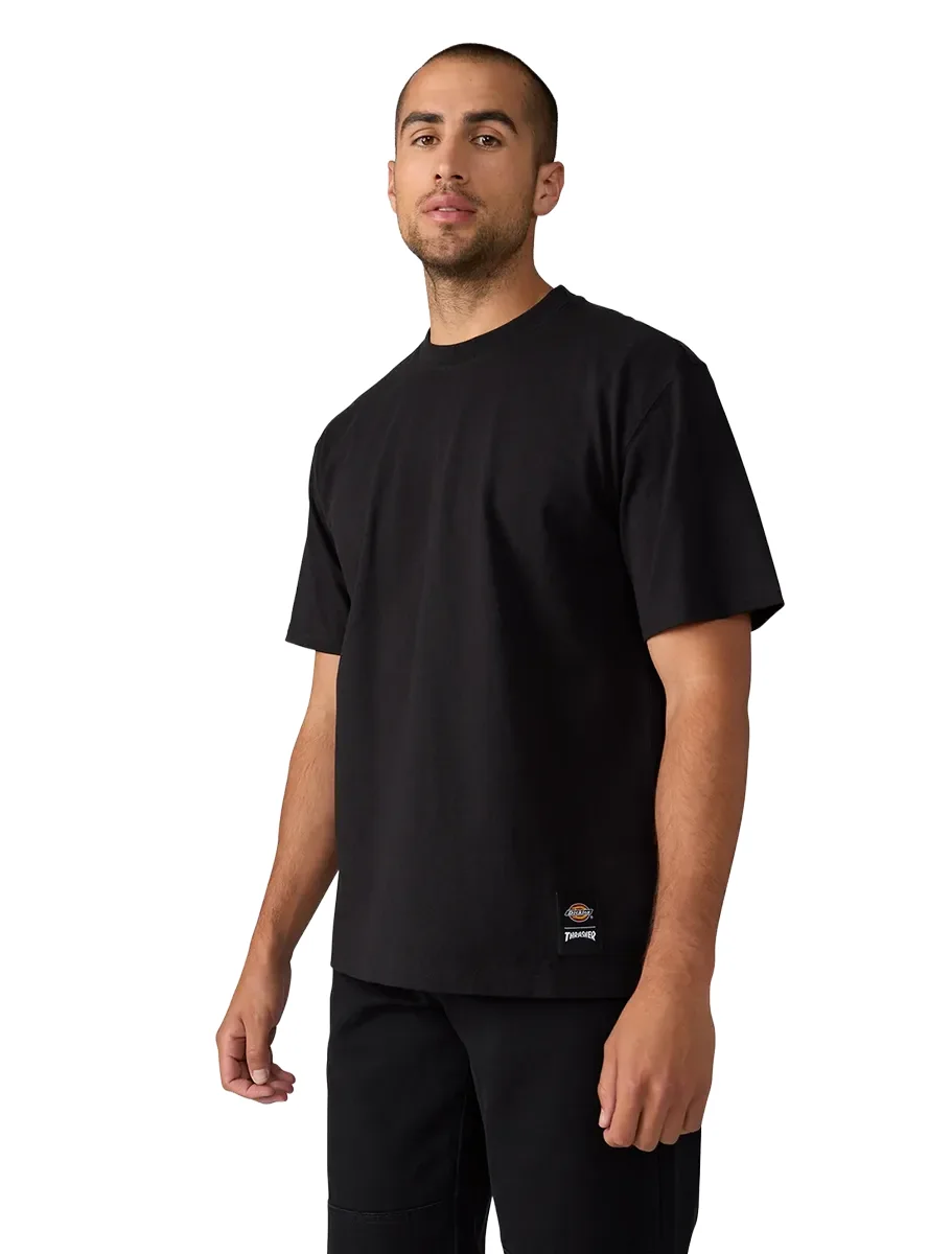 ה - The Thrasher x Dickies Graphic Tee SS היא טי שירט קצרה עם כיס בגזרה משוחררת, עשויה כותנה במשקל 230GSM. וכוללת תווית Dickies ארוגה מעל הכיס והדפס משותף גדול בגב. טי שירט קצרה עמידה וחזקה עם גרפיקה משולבת של שני המותגים האיקוניים. הרכב בד: 100% כותנה.